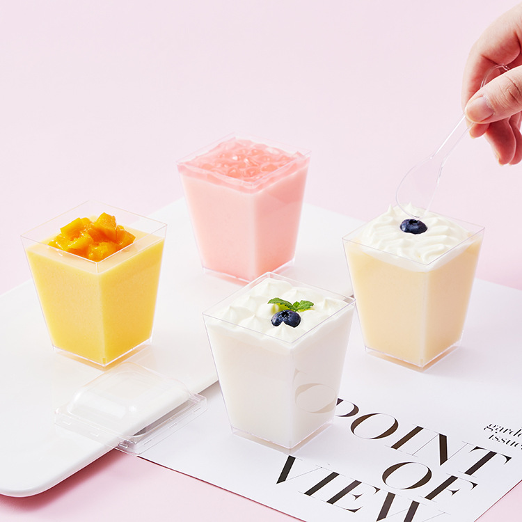 使い捨てps高足ムースカップ透明プラスチックデザートカップ四角いカップヨーグルトアイスクリームカップアイスクリームカップ