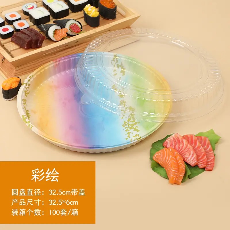 使い捨て円形寿司箱商用分解プリント弁当出前円盤サーモン刺身包装箱蓋付き