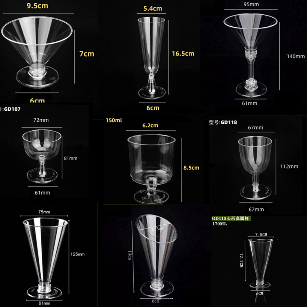 使い捨てプラスチックワイングラスシャンパンカップカクテルカップケーキ派対カップ洋食披露宴ムースカップ
