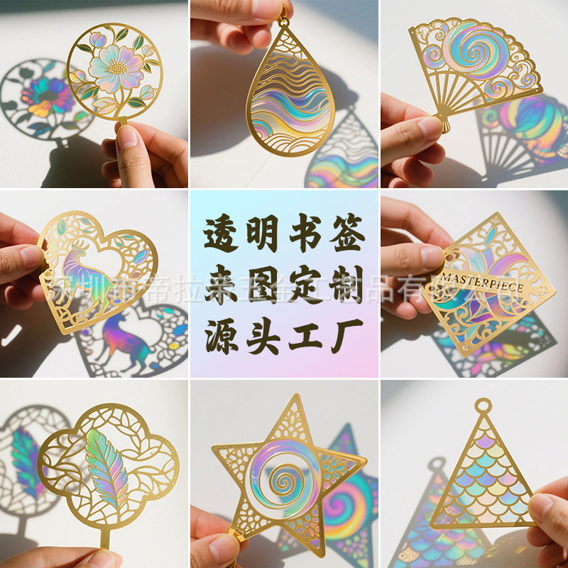Pvcブックマークカスタマイズ小ロットロゴプラスチック防水ブックマーク異形レーザー創意紙ブックマークカスタマイズ