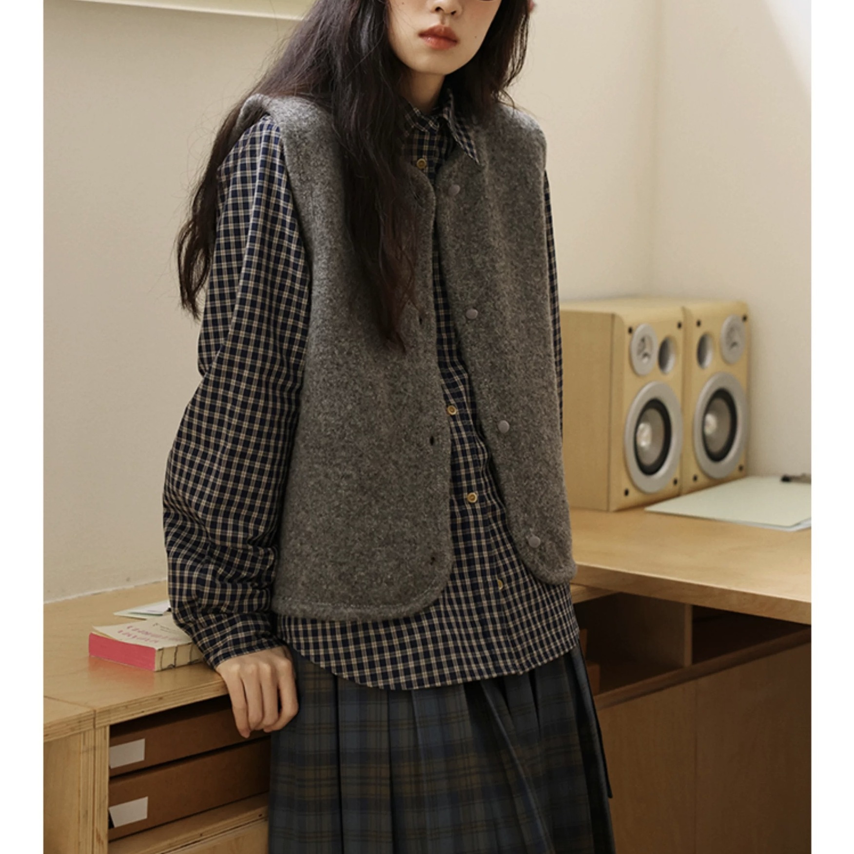 Fr * nkish * p春秋新作ウール混紡馬挟みvネック単列ボタン中性減齢馬甲ベスト