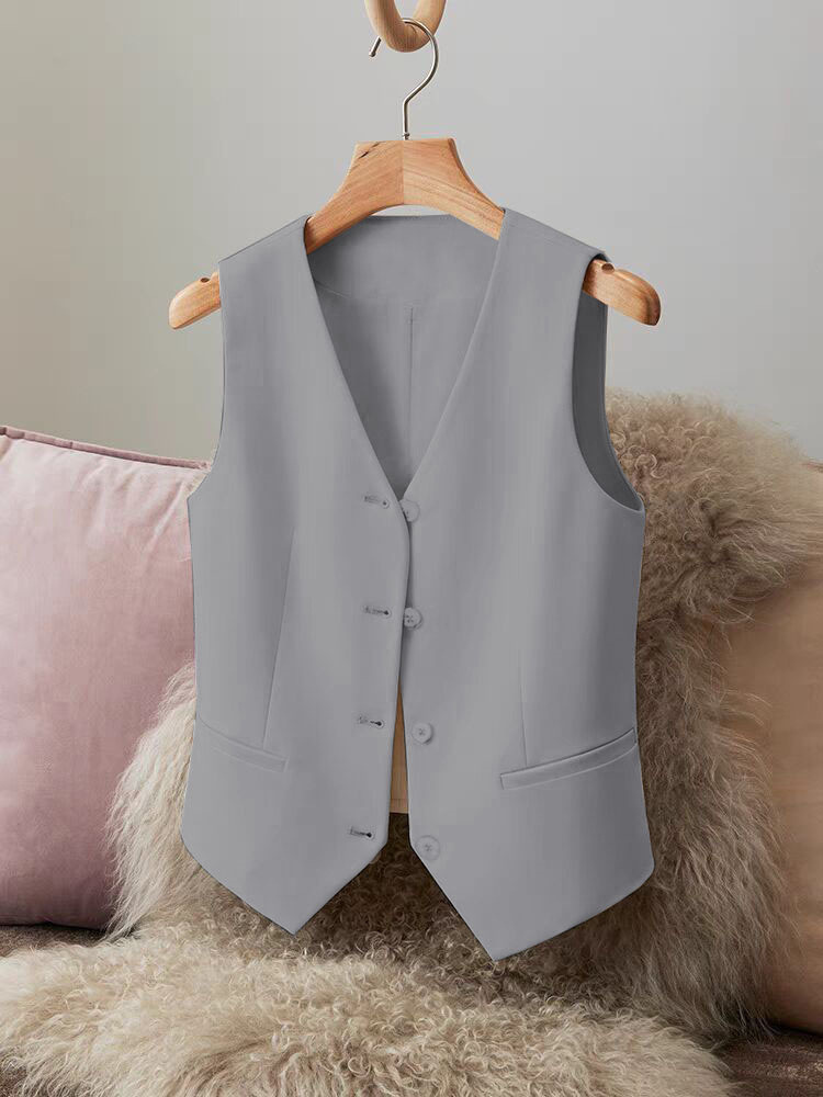 夏の欧米の婦人服のクロスボーダーの新型の通勤は簡単でファッション的なボタンの純色のベストのカジュアルな上着の丸首のベストです。