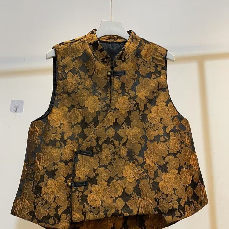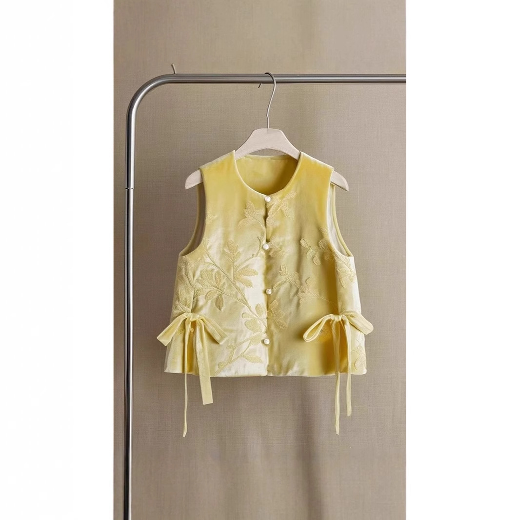 ドーパミンは新中国風の独特な綺麗な黄色のジャカードのベストを着ています。