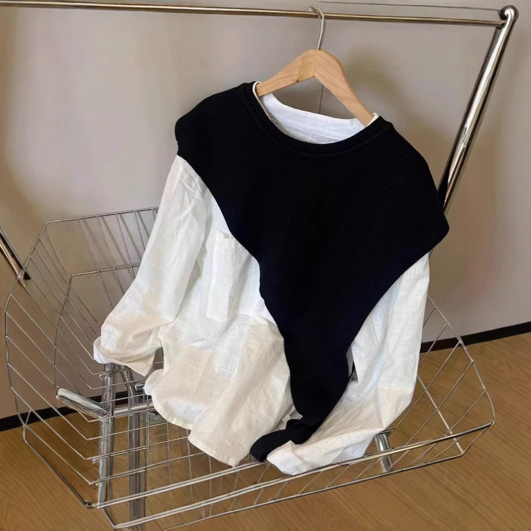 司南の流行のブロガーの風格のフランスのデザイン感の2着のゆったりしているセーターのニットの馬甲はsn4980を重ねて着ます。