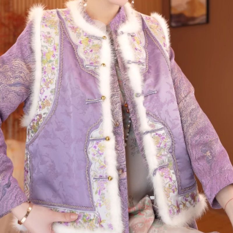 2024年秋冬新作改良版丸襟皿ボタン薄手の洗練された国潮漢要素百合小上着馬甲