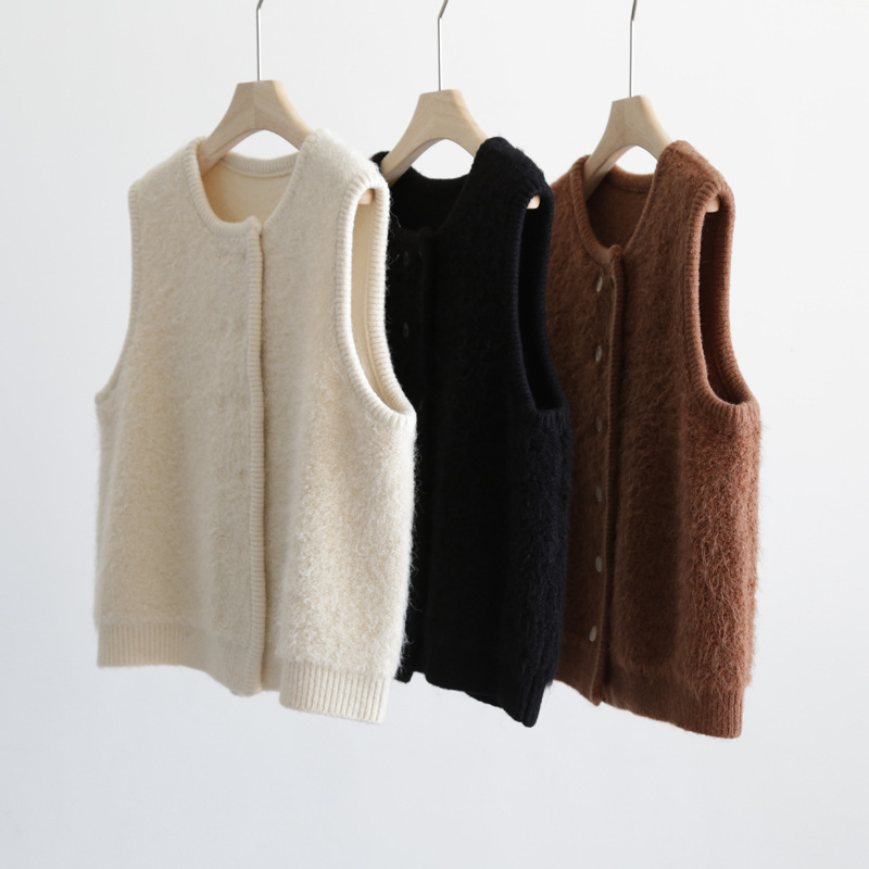 レトロなゆったりした外着vネックバックル馬甲女秋冬新作女装重ね着洋気ニットベスト女カンタン