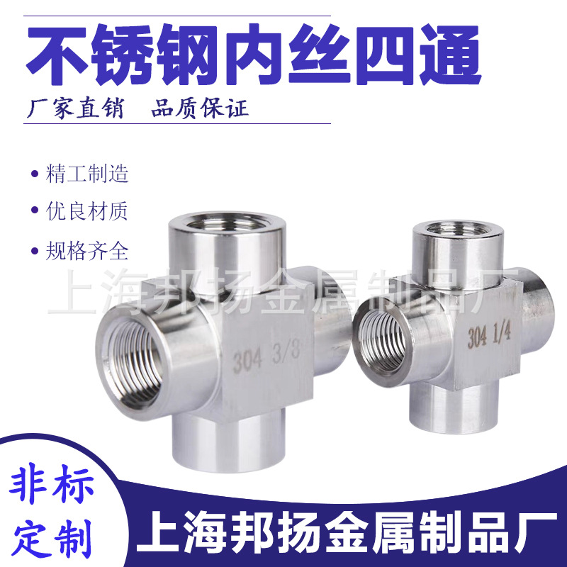 304ステンレス内糸四路継手四角肉厚高圧十字ねじ継手計器四路変換4点