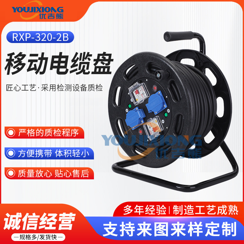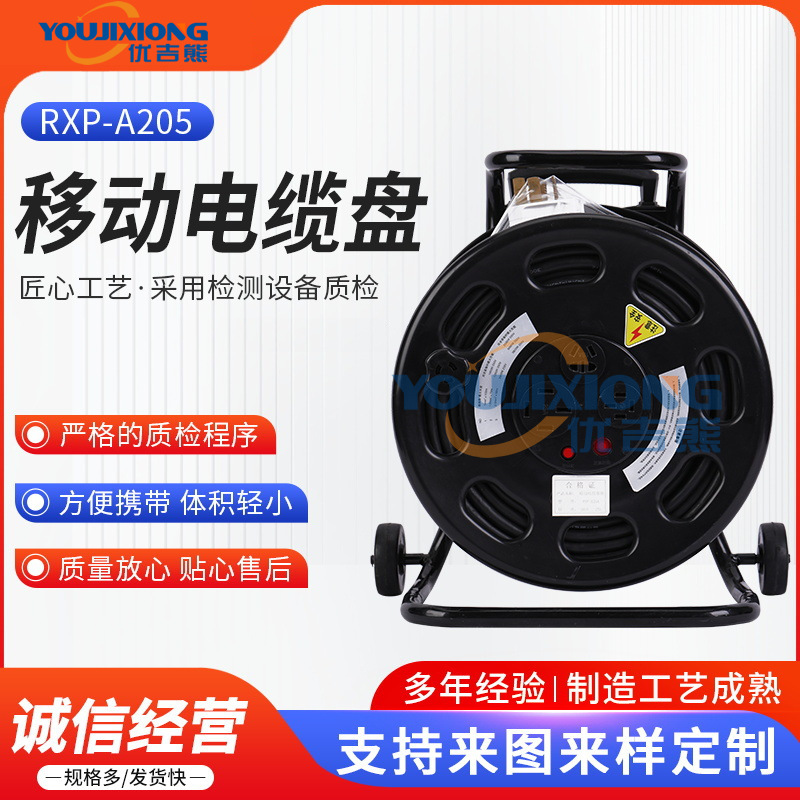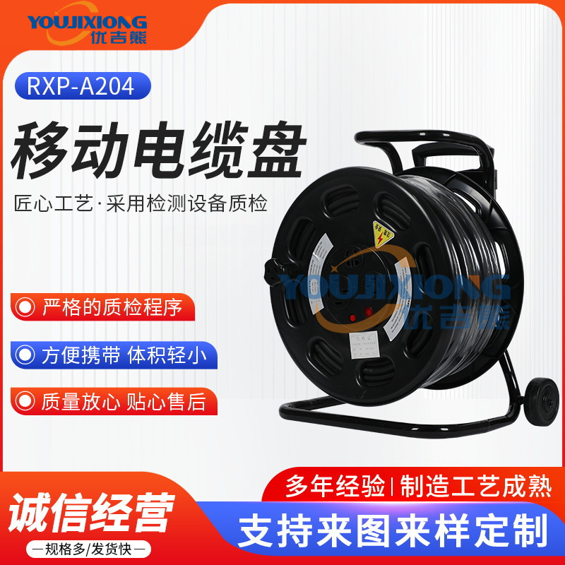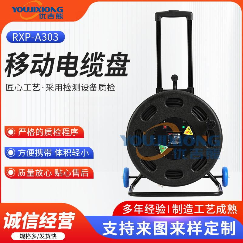 ホイール付きモバイルスプールケーブルリール RXP-A304 トロリーモバイルケーブルリール過熱漏電保護ケーブル