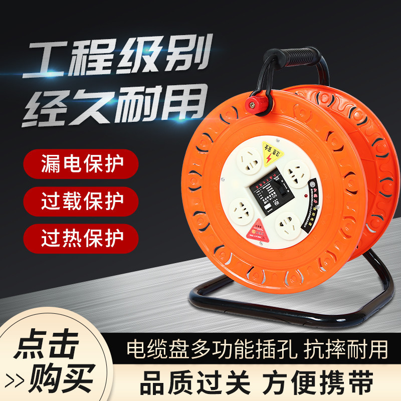 ブルーラインディスクソケットモバイルケーブルリールコードリールドラッグラインローラー 20/30/ 40m 延長コードプラグインストリート販売