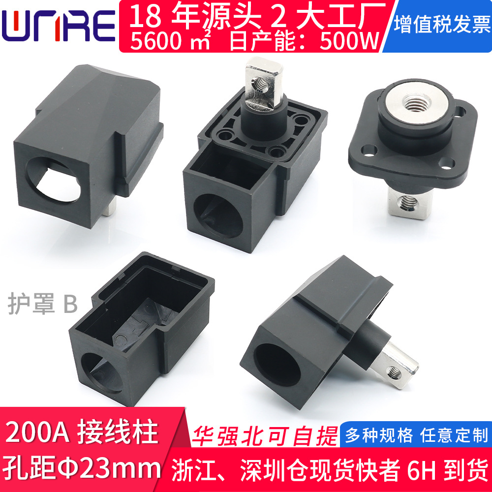 200A端子台、保護カバー付き、高電流、新エネルギー、壁貫通ネジ式、リチウム電池端子、蓄電コネクタベース