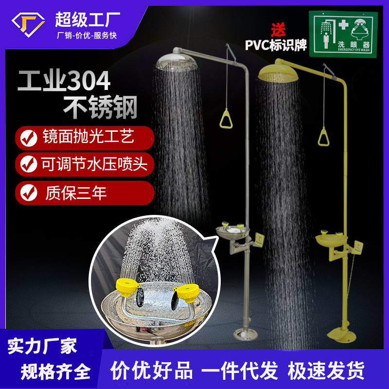 メーカー直販検査工場304ステンレス複合式緊急シャワーシャワー縦型洗眼器本尚
