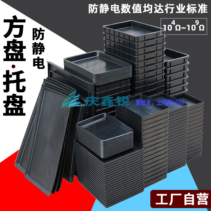 静電気防止角盤部品箱黒色プラスチック盤工業材料回転盆プラスチック盤長方形工具トレイ