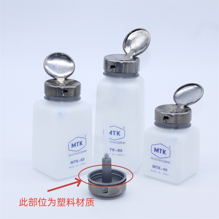 プラスチックボトル押え式アルコールボトル工業用洗板水ステンレスカバー液体角瓶分注式溶剤ネイル空瓶