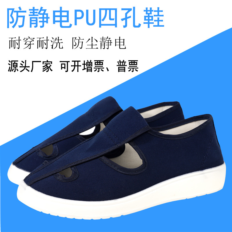 静電防止靴spuクリーンpvcキャンバス白青中巾四眼ソフト底厚さ四穴作業靴クリーン靴