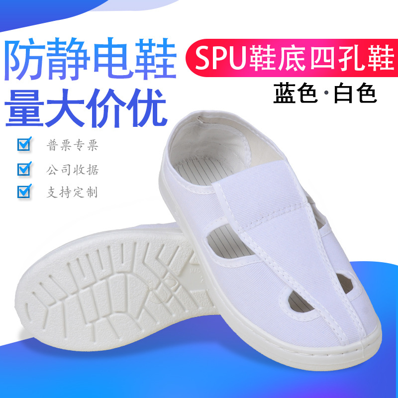 静電気防止靴 夏用 SPU 無塵靴 作業靴 労働保護 電子工場 通気性 四穴 無塵室専用
