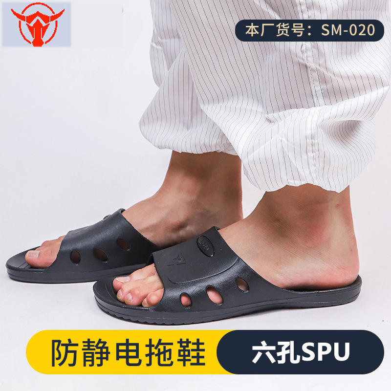 電子工場作業靴帯電防止スリッパ 6 穴 SPU 快適なソフトソール作業黒スリッパソースメーカー卸売