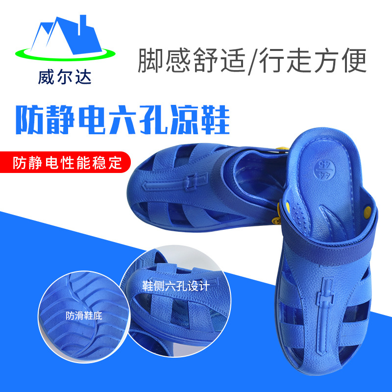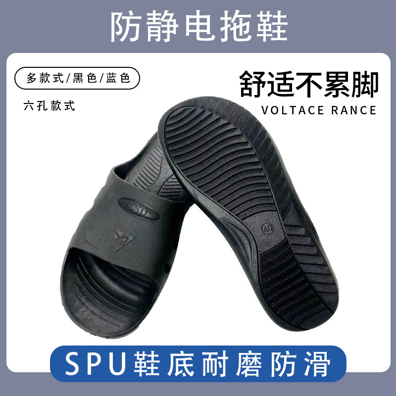 SPU作業靴ソフトベースESDスリッパメーカー卸売り小六穴滑り止めスリッパ静電気防止黒青電子工場