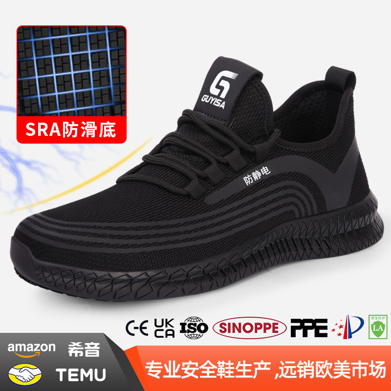 2025新型静電気防止靴SRA滑り止め男防打防止安全鋼包頭通気クリーン靴卸売り
