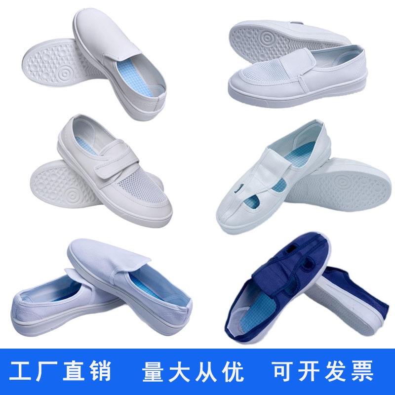 静電気防止靴電子工場クリーンショップ靴白男女同項滑り止め耐摩耗四穴靴清潔靴