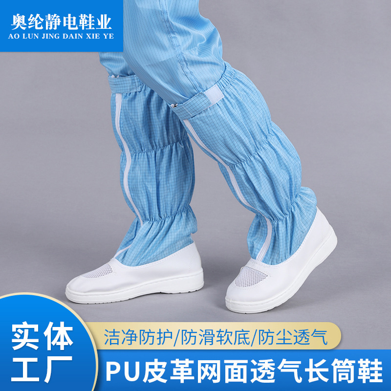 メーカーは多色puメッシュ長筒クリーン靴工場クリーン工場用作業靴クリーン静電気防止靴を供給している