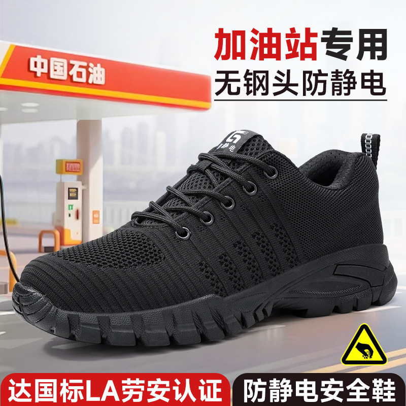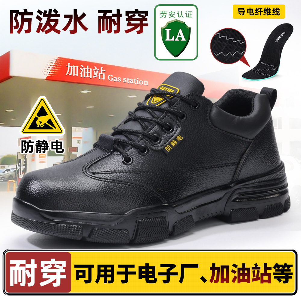静電気防止靴夏の通気性鋼包頭作業靴は、労働保険靴男ガソリンスタンドの防護靴を刺さないようにする