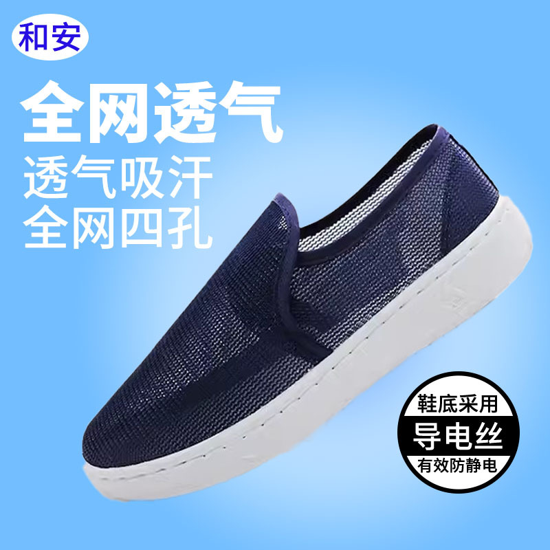 クリーンネット靴静電気防止PVCキャンバスネット靴PUシングルネット靴マジックテープ作業靴メーカー卸売り