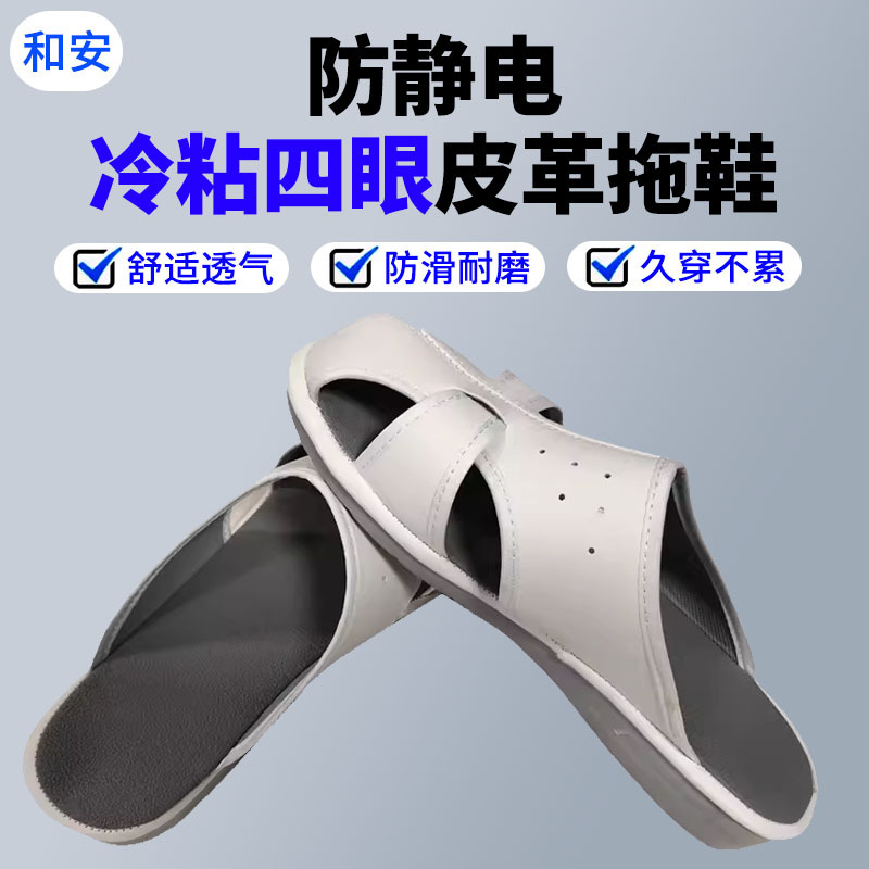 電子工場の静電気防止pu靴大四穴冷粘スリッパ厚さソフト底クリーン工場の男女作業靴