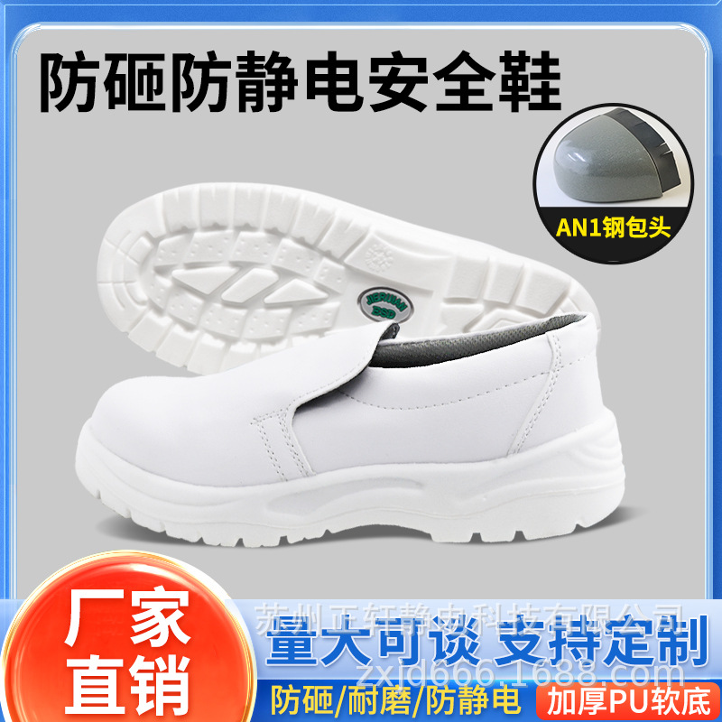 静電気防止靴pu厚い柔らかい底耐摩耗性滑り止め安全靴労働保護靴白色安全防護靴