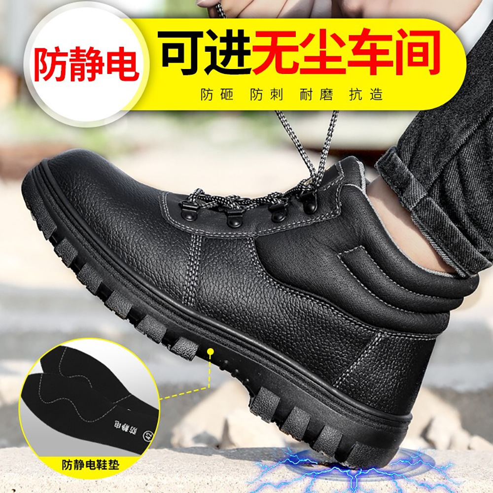 静電気防止安全靴帯鋼包頭防打防刺着中実底労働保険靴男冬通気耐摩耗工事現場