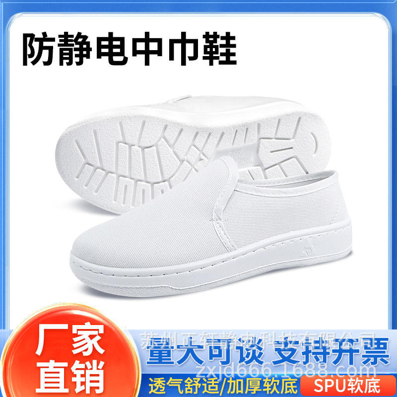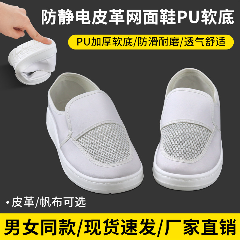 帯電防止白革シングルメッシュシューズ、通気性のある防塵靴、クリーンシューズ、ワークショップPU厚みのあるソフトソール防塵作業靴