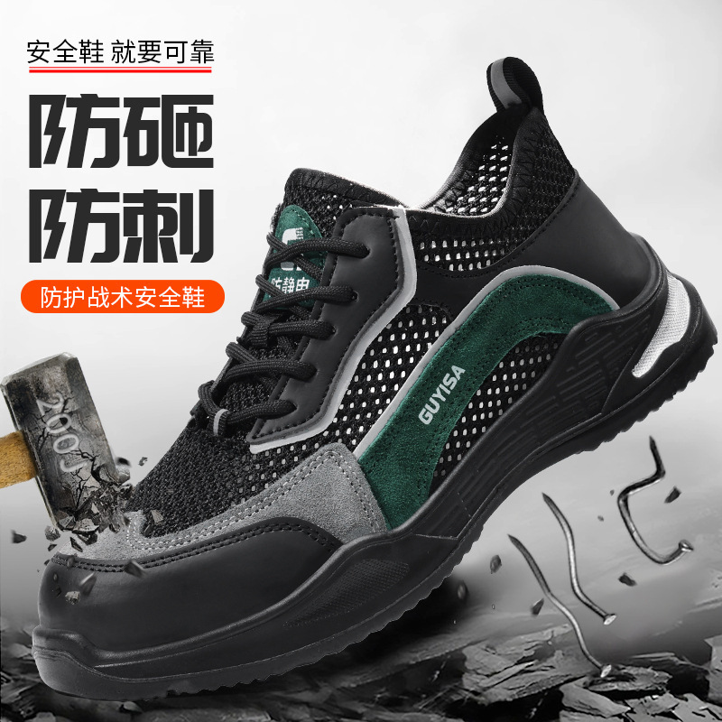 夏の労働保護靴、耐スマッシュ、耐穿刺、帯電防止安全靴、スチールつま先、耐摩耗性、快適、通気性、足臭くない作業靴