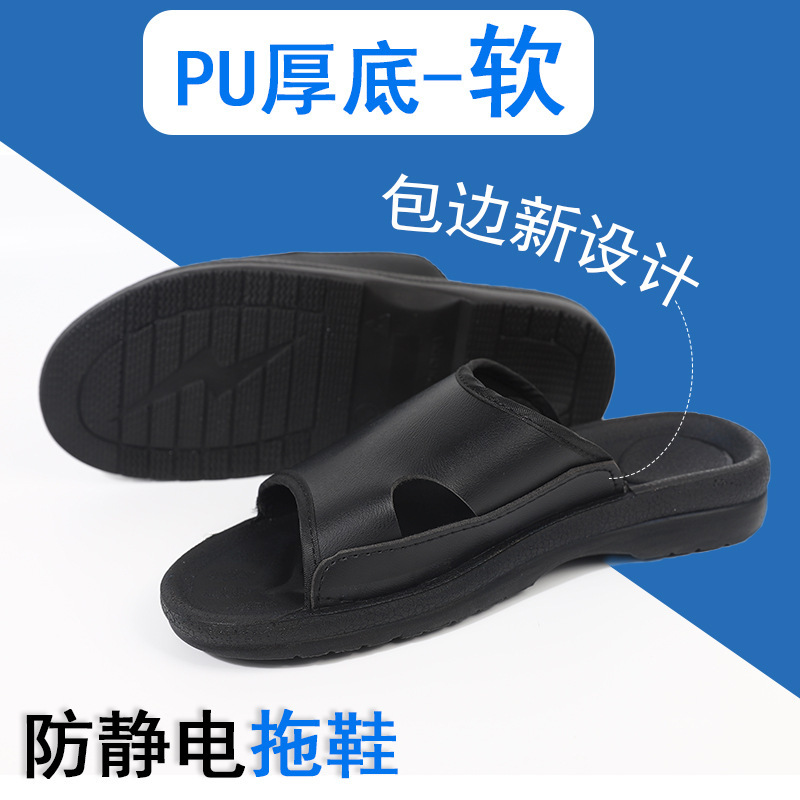 男性用帯電防止サンダル、レザーPU厚みのあるソフトソール、女性用防塵作業靴、黒の清潔で防塵サンダル