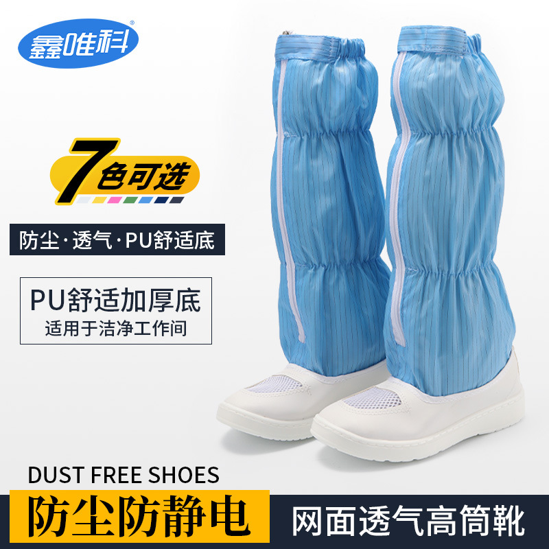 静電防止靴ブーツ長筒pu底メッシュ面通気性クリーンシューズ作業靴清潔靴ストライプ労働保護靴