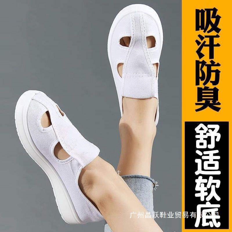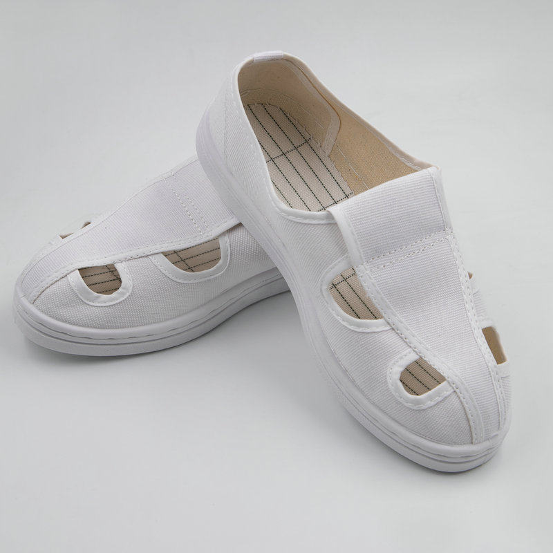 メーカースポット帯電防止pvc帆布クリーンルーム通気四穴靴電子工場食品加工作業靴