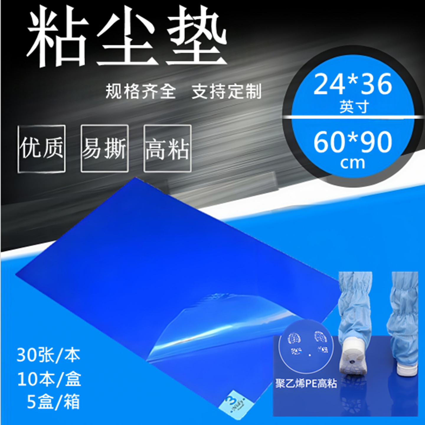 18*45クリーンルーム専用除塵シールブルー45 * 114cm粘着パッドpe引き裂いて粘着パッドメーカー