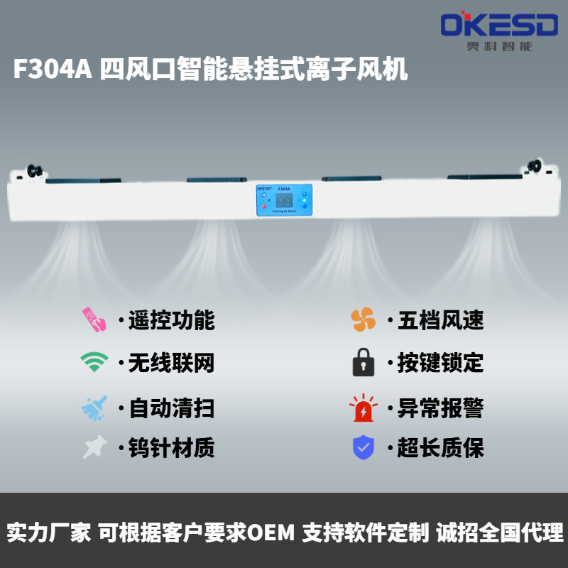 Okesd 4ヘッドサスペンション無線ネットワークインテリジェント工業イオン除去ファン静電除去器自動洗浄