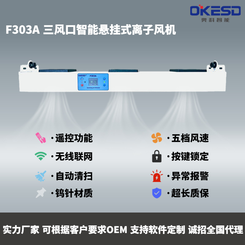 【Okesd】三頭吊り無線ネットスマート工業静電イオンファン静電除去器