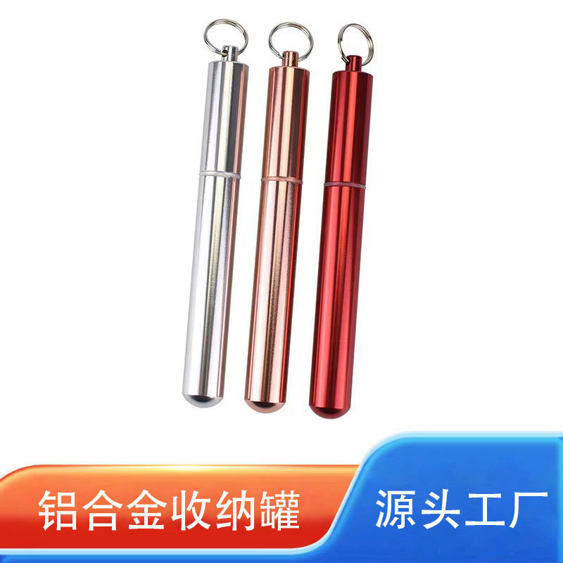 スポットマルチカラーアルミニウム合金収納タンク密封された防水伸縮ストロースリーブキーホルダーハンギングボトル金属包装ボックス