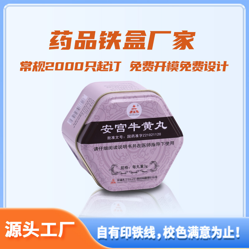 オーダーメイド六角鉄箱包装漢方薬丸薬ブリキ缶医薬品ヘルスケア製品六角鉄箱
