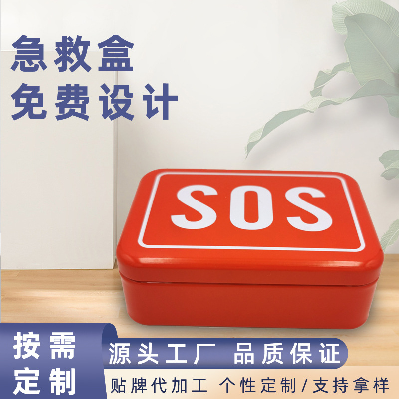 Sos緊急レスキュー鉄ボックス角型カラープリント角型ブリキ薬箱家庭薬収納空鉄ボックス
