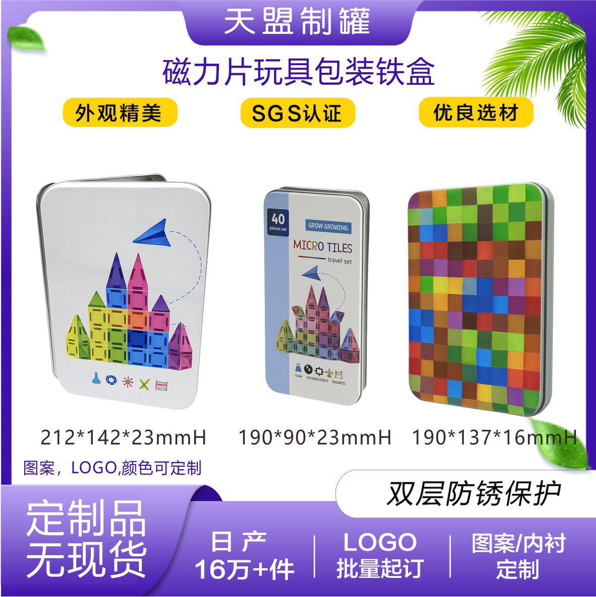 カスタマイズされた長方形の磁気シートおもちゃの包装ブリキの箱、ヒンジ付き天蓋と磁気ビルディングブロックブリキの包装箱