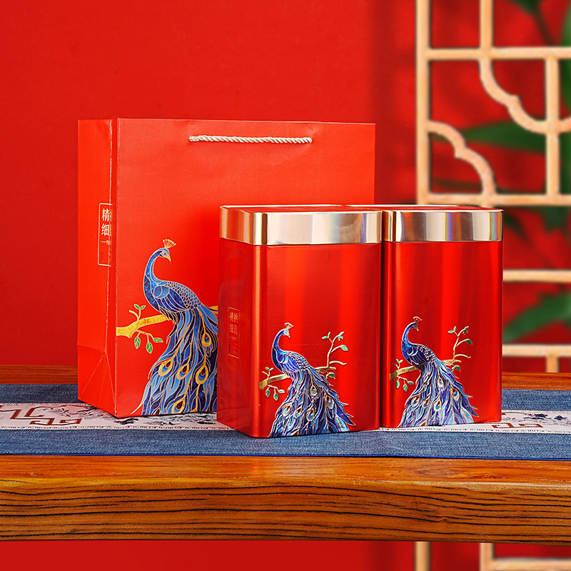 新しいレーザーの大きいサイズのお茶の缶の鉄の缶の1斤は通用する蜜蘭の香りの大きい赤い服の鳳凰の単叢の楚の赤い鉄の箱を詰めます。