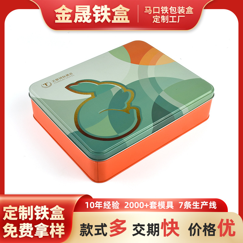 メーカー直供中秋月餅鉄箱四個入りブリキ角型金属箱食品収納箱ギフトボックス