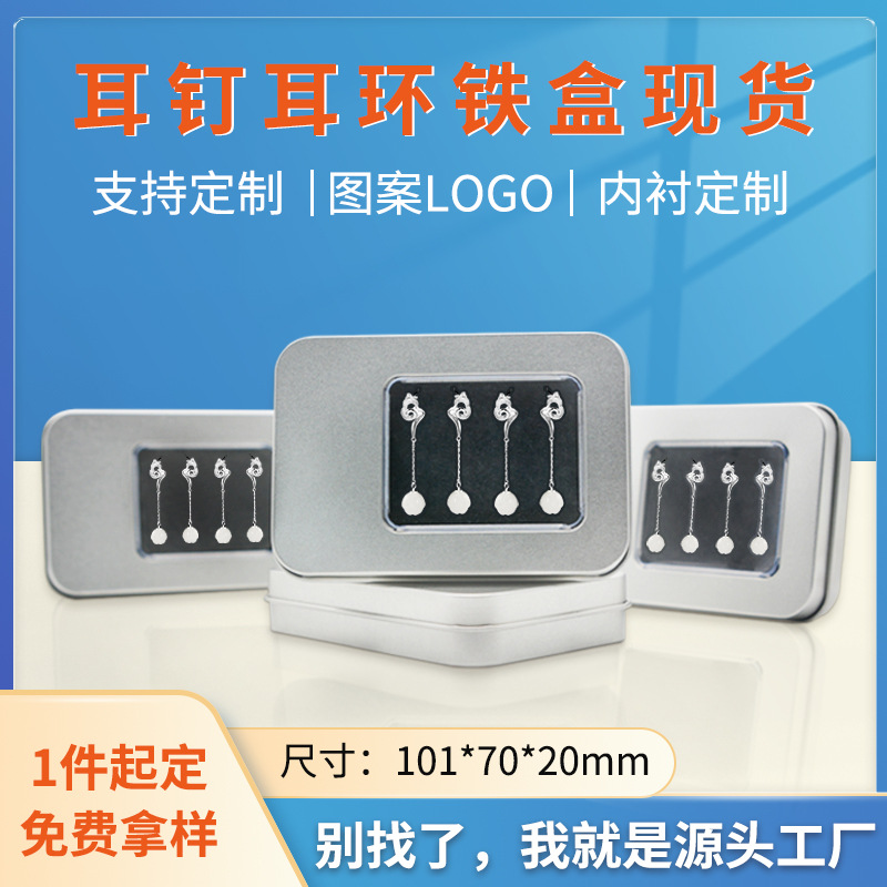 現物の小さい鉄の箱のピアスのイヤリングの金属の包装箱の銀色の窓の長方形は馬の口の鉄の箱を厚くしてカスタマイズします。