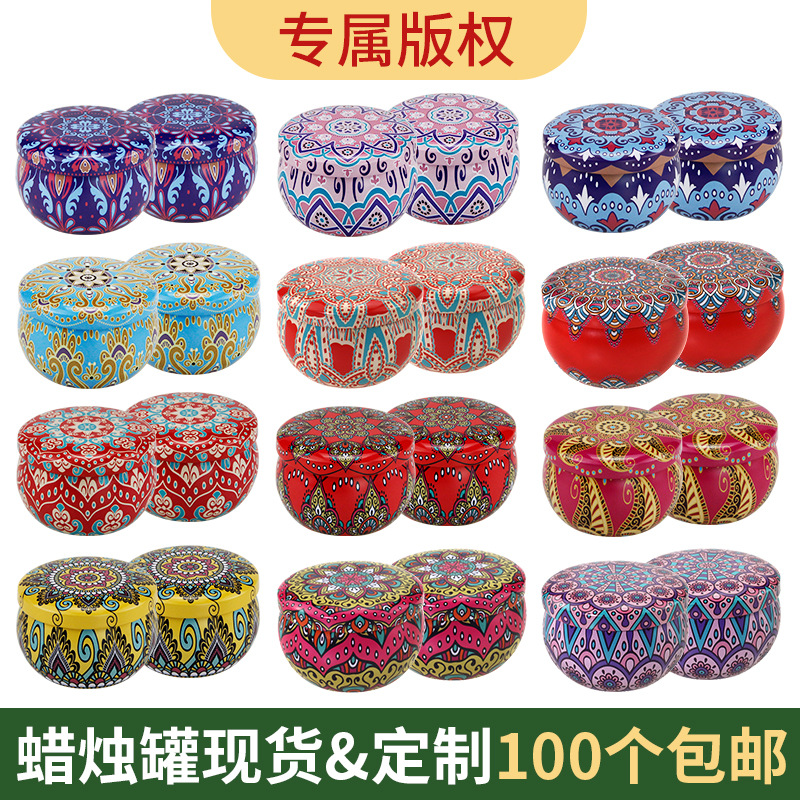 食品鉄缶大腹缶梨ペーストキャンディー鉄缶民族風模様金属ろうそく鉄箱ブリキろうそく缶
