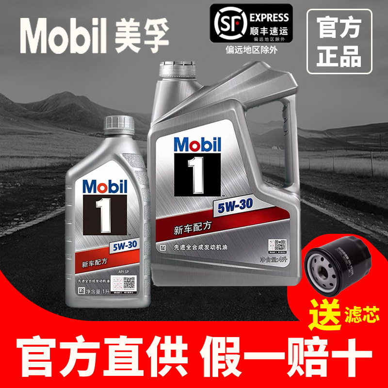 正規品シルバー. モービル1号風尚版5W-30全合成オイルガソリン車エンジンSP4L自動車オイル