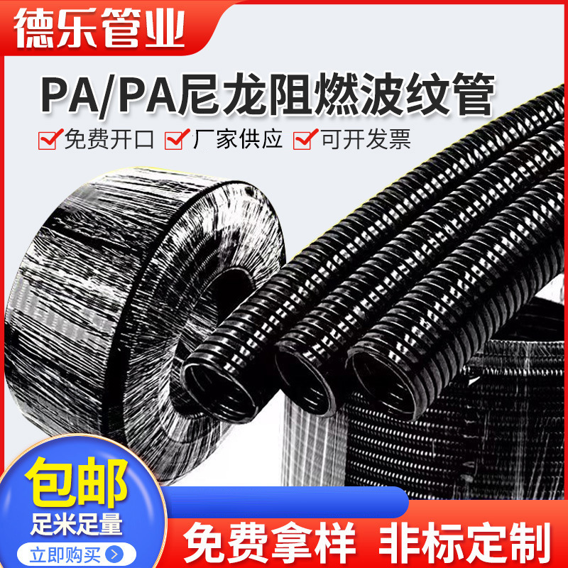 波峰PAナイロン難燃ベローズプラスチック糸通しホース耐高温自動車ハーネス電線ケーブル保護カバー
