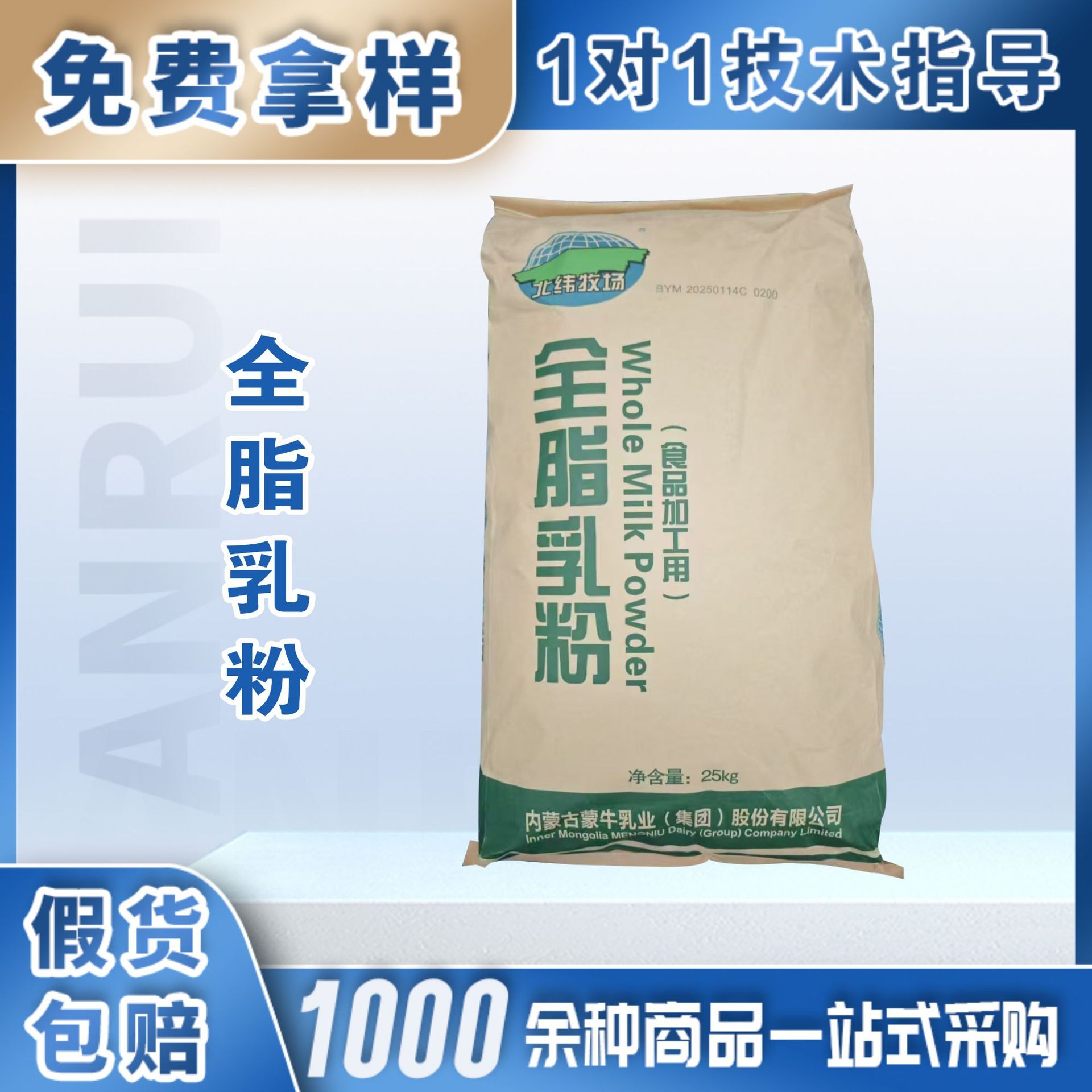現物直発伊利全脂粉ミルク蒙牛全脂乳粉恒天然全脂粉ミルク25kg/袋