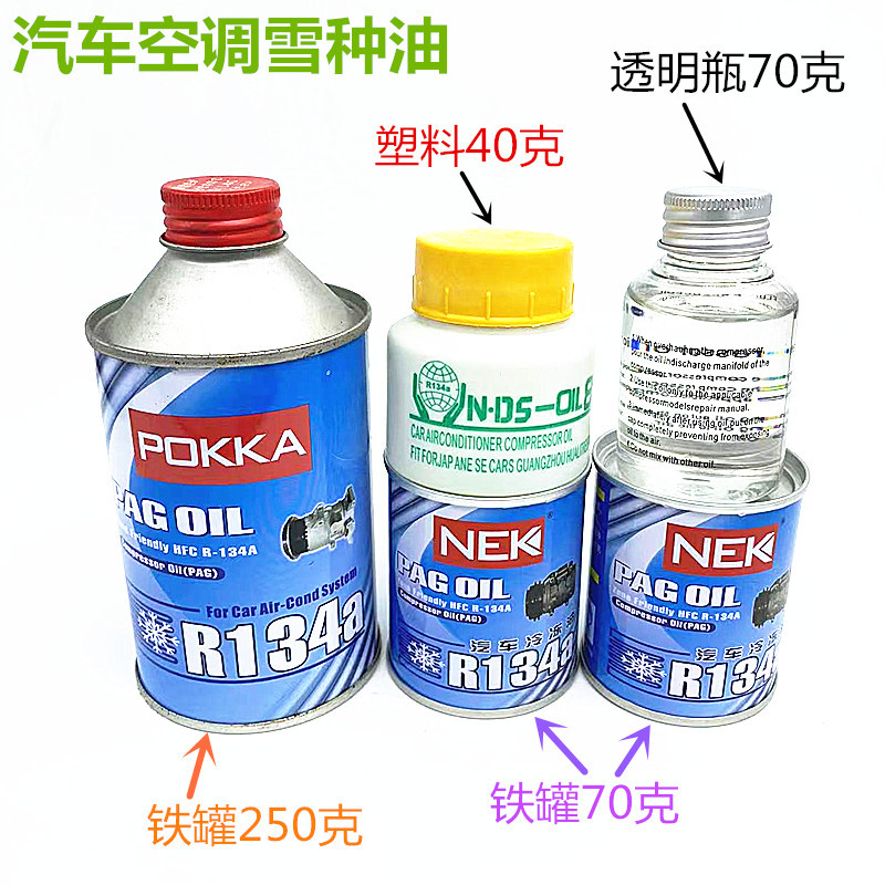 自動車エアコン鉄瓶プラスチック冷凍油r134a雪種油冷媒油フッ素油圧縮油70グラム250グラム
