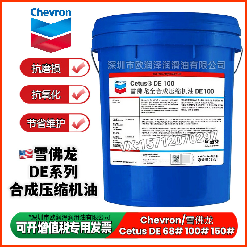 雪仏龍全合成圧縮機油DE Chevron Cetus DE 68 100 # 空圧オイル